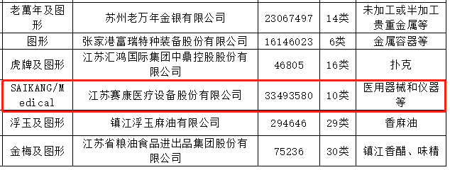 12月7日,江蘇省商標協(xié)會發(fā)布了《關于擬認定“江蘇省高知名商標”的公示》的通知,賽康醫(yī)療“SAIKANG MEDICAL”商標被擬認定為“江蘇省高知名商標”。
